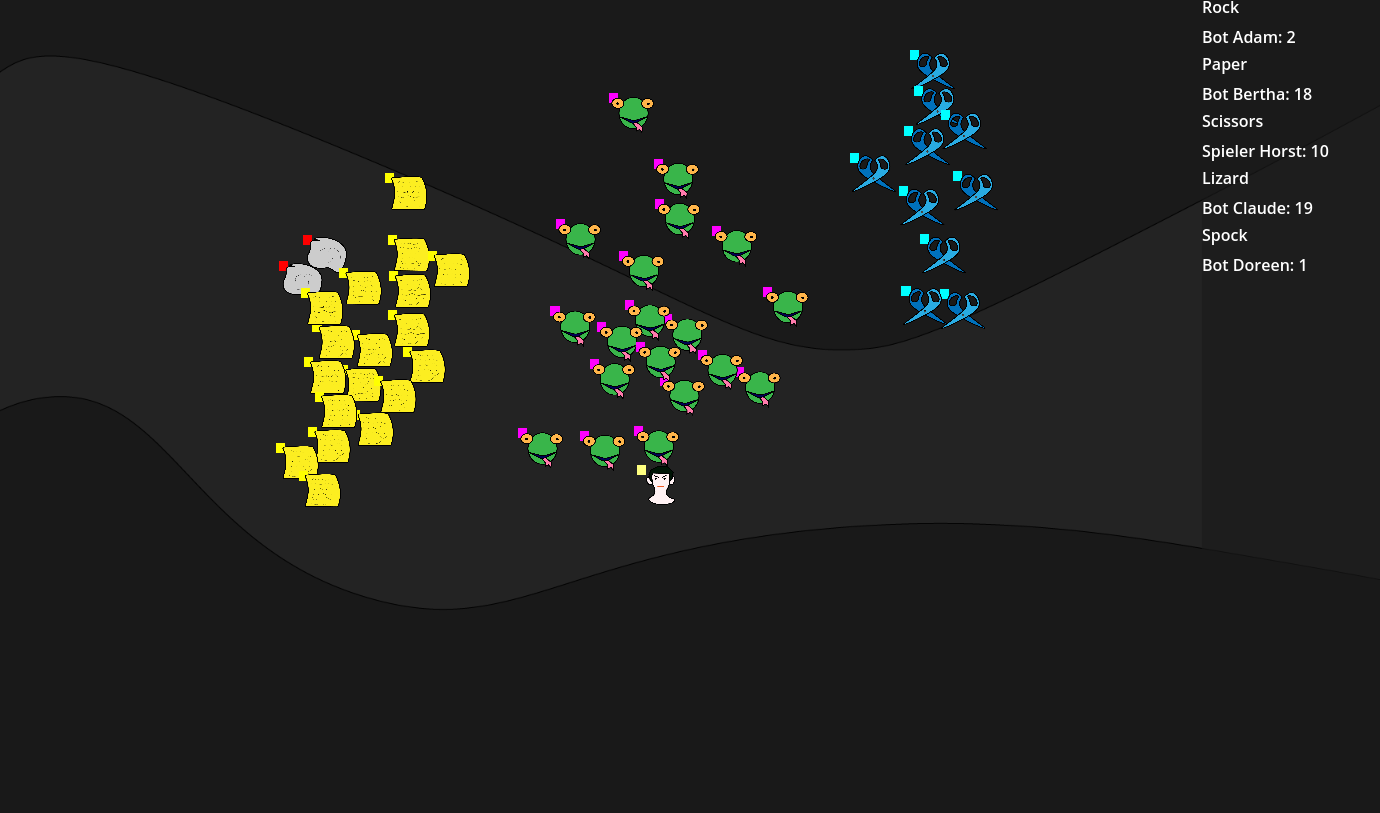 Endlich kannst du als Schwarm wütender Scheren gefährliche Papiere zerschneiden oder als Haufen Steine wütende Echsen zerschlagen. Das klingt nach Spaß? Dann freue dich auf das kostenlose Online Spiel Schere Stein Papier Xtreme.